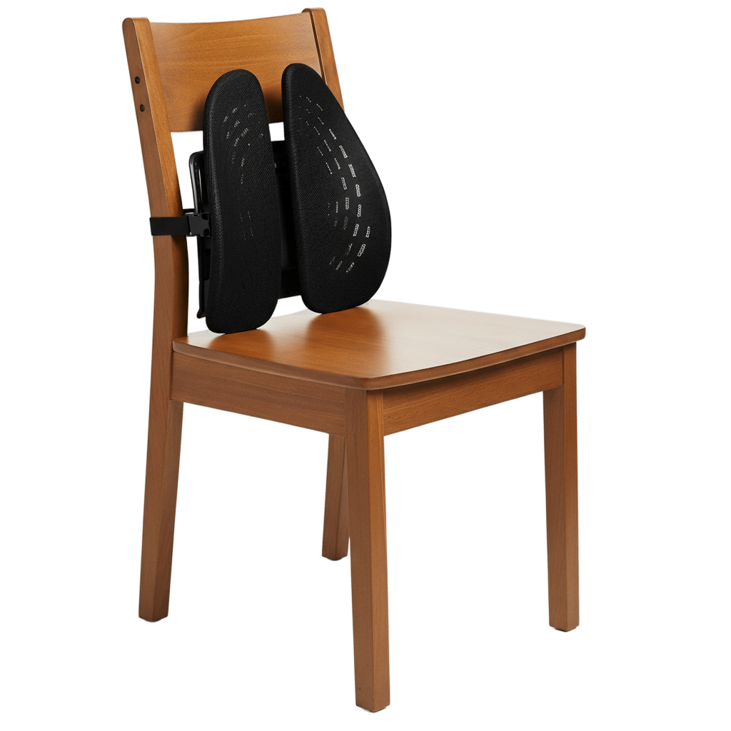 Su diseño tipo ala se adapta a la curvatura natural de tu columna, proporcionando un soporte firme y cómodo. Fabricado en ABS resistente con resorte, este soporte lumbar es duradero, flexible y fácil de instalar en cualquier asiento.